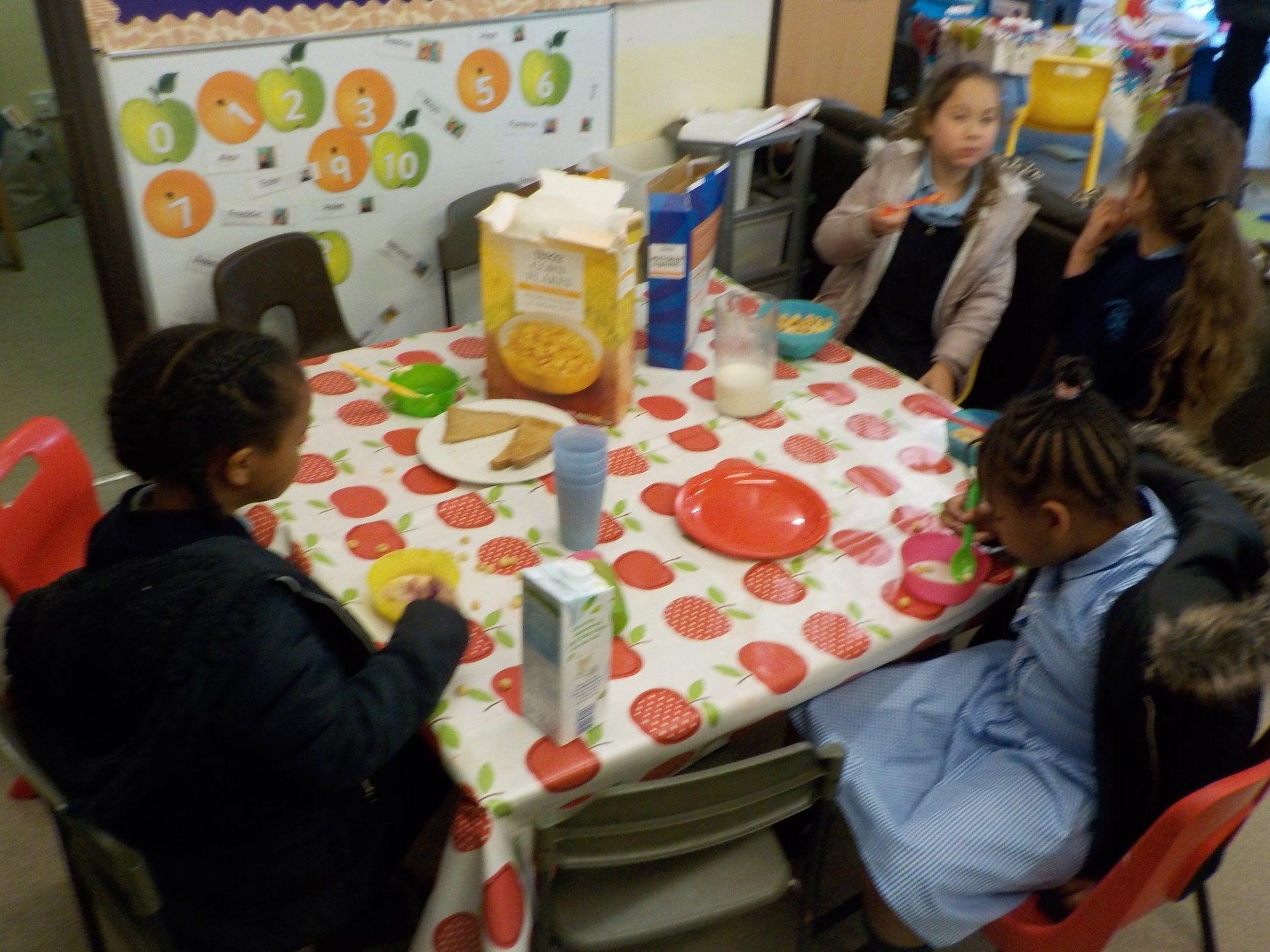 Children can be dropped off by parents anytime from the start of the session at 7.30am and breakfast is served between 7.30am-8.30am. At the end of the session children are encouraged to help tidy up and collect their belongings ready for school. Staff then escort children safely to their classrooms or to a designated drop off point. We provide a selection of breakfasts such as: